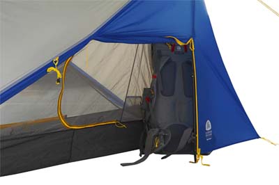 There are two doors and two vestibules on the 2P version of the Flash Air (the 1P only has one vestibule and 1 door). This makes it easier to get in/out of the tent and each person has gear storage space.
