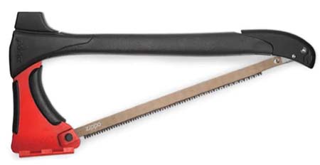 Most 2-in-1 tools are gimmicks which don’t work well.  However, the Zippo axe-saw combo tool actually performs really well.  It is an axe (actually, more like a hatchet) which has a saw blade that can come out of its handle. The tool comes with an additional saw blade, both of which can fit in the handle. The axe can handle branches up to 4 inches in diameter.