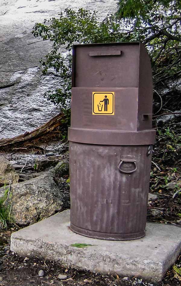 Garage, including food wrappers and leftovers, are one of the main attractants which bring bears to camp. If there is no garbage disposal where you are camping, you will need to keep garbage in with your food storage until you can dispose of it safely.